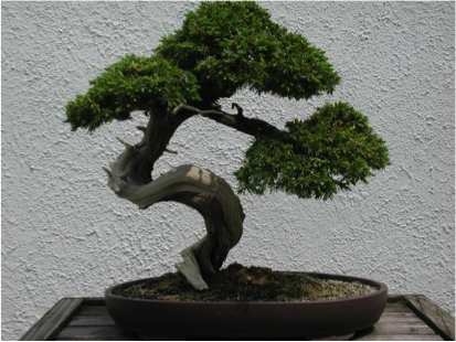 Bonsai is an ornamental tree or shrub grown in a pot and artificially prevented